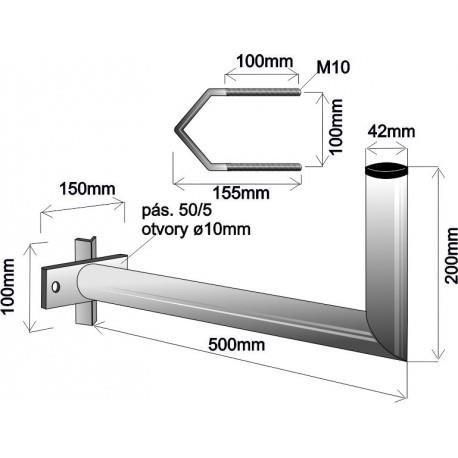 Držák antény na stožár s vinklem, galvanický zinek, délka 50cm