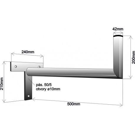 Držák antény na zeď, tvar T, délka 50cm