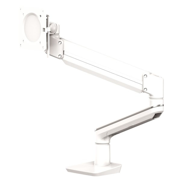 držák pro 1 monitor usnadňuje organizaci pracovního prostoru, zvětšuje prostor na pracovním stole, zmenšuje únavu zraku a zmírňuje svalové napětí ramen a krku minimalistický, stylový design s vestavěným systémem uspořádání šňůr a kabelů technologie plynových pružin umožňuje snadné nastavení monitoru pro práci a sdílení obrazovky rameno se může otočit o 360° s aretací v poloze 180° max. úhel naklápění + / - 90 ° min. - max. výška 74-619 mm max. náklon nahoru / dolů + 75°/ - 35° min. zatížení jednoho ramene je 9 kg montážní systém VESA, splňuje normy VESA 75 × 75 a 100 × 100 snadná montáž ke stolu pomocí svorky nebo šroubu s okem materiál kov doporučeno Mezinárodní akademií pro ergonomické produkty FIRA™.