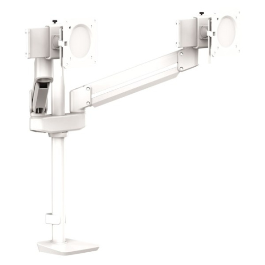 držák pro 2 monitory usnadňuje organizaci pracovního prostoru, zvětšuje prostor na pracovním stole, zmenšuje únavu zraku a zmírňuje svalové napětí ramen a krku snadné nastavení ramene pomocí plynové pružiny, díky které se poloha monitoru mění snadno a velmi přesně minimalistický, stylový design s vestavěným systémem uspořádání šňůr a kabelů technologie plynových pružin umožňuje snadné nastavení monitoru pro práci a sdílení obrazovky rameno se může otočit o 270° s aretací v poloze 180° max. úhel naklápění + / - 60 ° max. výška 510 mm min. zatížení jednoho ramene je 9 kg montážní systém VESA, splňuje normy VESA 75 × 75 a 100 × 100 snadná montáž ke stolu pomocí svorky nebo šroubu s okem materiál kov doporučeno Mezinárodní akademií pro ergonomické produkty FIRA™.