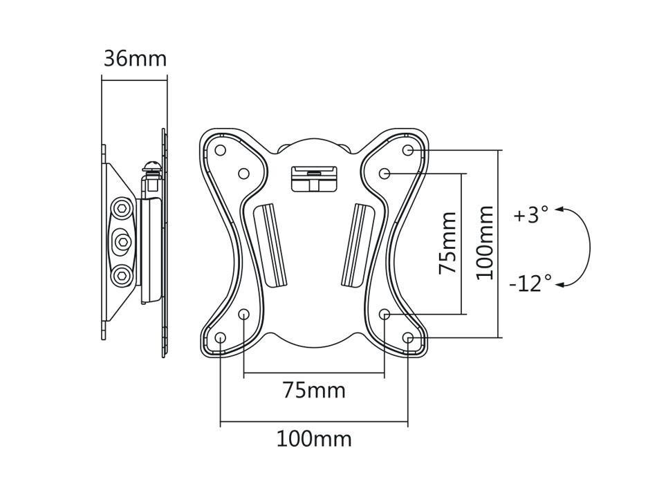 Sklopný držák na monitory a Tv Fiber Mounts M7C15 Nástěnný držák monitoru nebo Tv 13" až 30", náklon +3° až -12°, VESA 75x75 a 100x100, vzdálenost od zdi 36mm, nosnost 25kg Nástěnný držák pro zavěšení monitoru nebo televizoru s úhlopříčkou 13-30", možnost náklonu +3° až -12°, VESA standard 75x75 a 100x100, nosnost 25kg. Držák má vynikající, velmi pevnou a bezpečnou konstrukci. Barevné provedení černé, montážní materiál součástí balení. Sklopný držák na monitor nebo malou televizi Fiber Mounts M7C15 Technické údaje: nosnost 25kg podpora VESA standardu 75x75 a 100x100 doporučená velikost obrazovky 13" až 30" možnost náklonu +3° / -12° vzdálenost od zdi 36mm korekce roviny zajištění proti vysazení velmi pevná, bezpečná konstrukce barva černá záruka 5 let Nástěnný sklopný držák na monitor nebo menší televizi Fiber Mounts M7C15 Držák monitoru nebo Tv M7C15 podporuje VESA standard: VESA 75x75 VESA 100x100 Nástěnný držák Fiber Mounts M7C15 je vhodný pro zavěšení všech typů televizorů a monitorů, které mají hmotnost do 25kg a podporují VESA standard 75x75 nebo 100x100. Úhlopříčka obrazovky není vůbec podstatná..