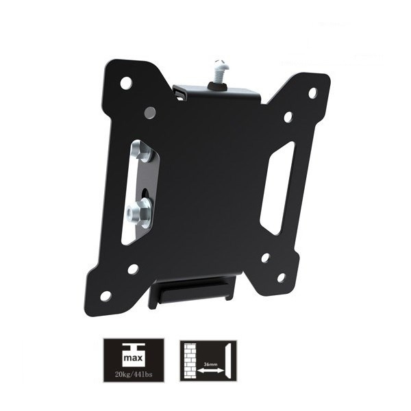 Držák monitoru Tv Fiber Novelty FN203T Sklopný držák na monitory a menší televize 13-30", VESA 75x75 a 100x100, náklon +10° až -15°, vzdálenost od zdi 36mm, nosnost 20kg, záruka 5 let. Nástěnný držák na monitory a menší televize 13-30", který umožní nastavení náklonu obrazovky +10°až -15°. Zavěšení monitoru nebo Tv je velmi snadné a rychlé, stejně tak i samotná instalace držáku na stěnu. Držák podporuje VESA standardy 75x75 a 100x100, nosnost 20kg. Barevné provedení černé, záruka 5 let. Držák na televize a monitory Fiber Novelty FN203T - sklopný, VESA standart 75x75 a 100x100 / drzakyastolky.cz Technické údaje: nosnost 20kg na televizory a monitory s úhlopříčkou 13" až 30" podporuje VESA standardy 75x75 a 100x100 umožňuje náklon +10° až -15° vzdálenost Tv od zdi 36mm konstrukce je ocelová velmi pevný a bezpečný nástěnný držák zajištění Tv nebo monitoru proti vysazení velmi snadná a rychlá montáž součástí balení je montážní materiál barevné provedení černé záruka 5 let Nástěnný sklopný držák na monitory a menší televize 13-30" Fiber Novelty FN203T Držák na Tv a monitory FN203T podporuje VESA standardy: VESA 75x75 VESA 100x100.