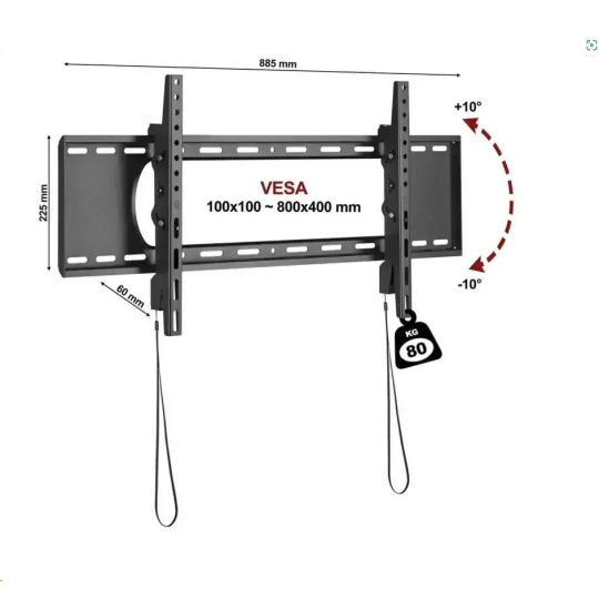 Držák televizoru Fiber Novelty C5T Profi sklopný držák na středně velké i rozměrné televizory / monitory 45" - 90", náklon +10° / -10°, vzdálenost 60mm, automatické zajištění Tv proti vysazení, instalační plocha 885 x 225mm, instalační materiál, VESA 100x100 až 800x400, nosnost 80kg Profesionální naklápěcí držák na středně velké i rozměrné televizory, monitory a displeje s úhlopříčkou 45" až 90". Držák vyniká pevnou konstrukcí s nosností 80kg, velkou instalační plochou s mnoha otvory pro ukotvení do zdi. Vzdálenost od zdi je 60mm, což zajišťuje dostatečný prostor pro odvětrávání a umožňuje naklonění Tv až o +10° / -10°. Držák podporuje VESA standardy 100x100 až 800x400 a má systém automatického zajištění Tv na držáku proti nechtěnému vysazení. V balení naleznete instalační materiál, malou vodováhu a přehledný manuál. Barevné provedení černé, záruka 5 let. Nástěnný držák na televize C5T umožňuje naklápění až 10 stupňů nahoru i dolů Technické údaje: nosnost 80kg na Tv / monitory / displeje s úhlopříčkou 45" až 90" podporuje VESA standardy 100x100 až 800x400 vzdálenost od zdi 60mm možnost naklápění nahoru i dolů +10° / -10° systém pro automatické zajištění obrazovky na držáku, uvolnění pomocí táhel kvalitní velmi pevná konstrukce instalační plocha 885 x 225mm, mnoho otvorů pro ukotvení na zeď instalační materiál + vodováha barevné provedení černé záruka 5 let Fiber Novelty C5T profesionální sklápěcí držák na televizory / monitory Držák TV C5T podporuje VESA standardy pro zavěšení: VESA 100x100 VESA 200x100 a 100x200 VESA 200x200 VESA 300x200 a 200x300 VESA 300x300 VESA 400x200 a 200x400 VESA 400x300 a 300x400 VESA 400x400 VESA 600x400 VESA 800x400 VESA držák na Tv pro zavěšení na stěnu C5T Držáky C5T dodáváme včetně instalačního materiálu: 4ks šrouby M6x14mm 4ks šrouby M6x30mm 4ks šrouby M8x16mm 4ks šrouby M8x35mm 4ks podložek 4ks distanční váleček 5mm 4ks distanční váleček 15mm 6ks hmoždinka (cihla, beton, dřevo) 6ks vrut 1ks imbusový klíč 4mm 1ks instalační mini-vodováha přehledný instalační manuál Pokud dodávaný instalační materiál není vhodný pro uchycení právě vaší obrazovky, je nutné zakoupit (železářství) 4ks šroubů v potřebném průměru a délce..