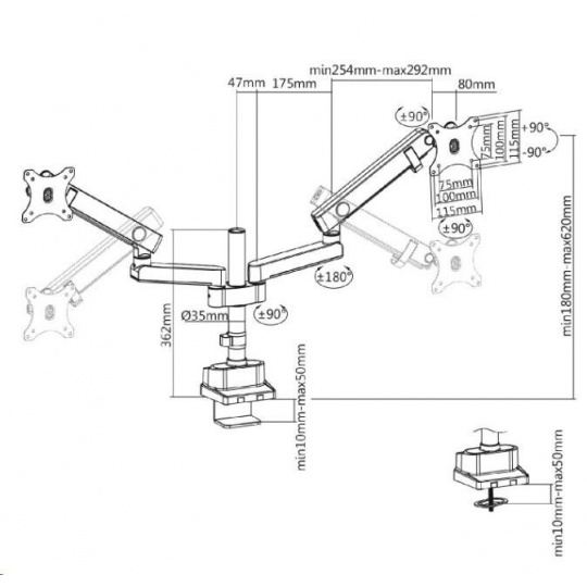 Dvouramenný stolní držák na 2 monitory Mounts AX812