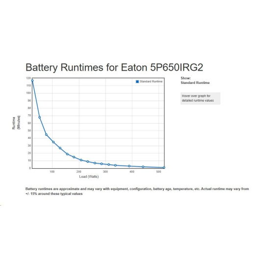 - UPS 5P může měřit energetickou spotřebu v kWh, kterou lze sledovat buď na LCD nebo pomocí softwaru Eaton Intelligent Power® Software Suite.