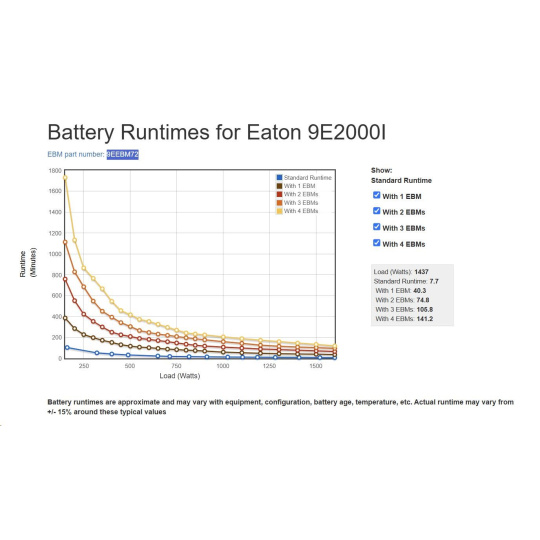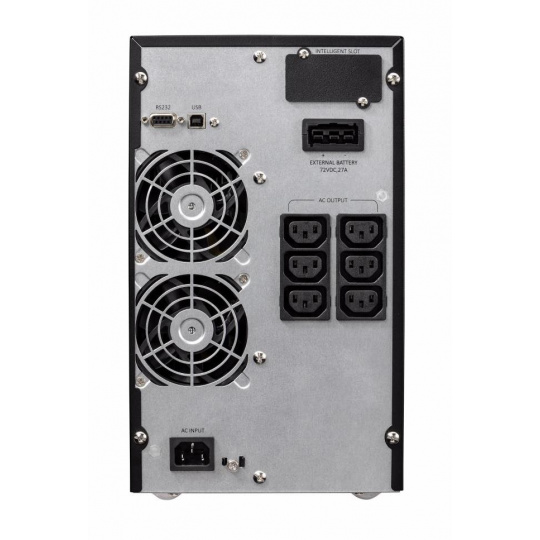 | Zvláštní charakteristiky | Topologie dvojité konverze Neustále monitoruje kvalitu vstupního napájení a reguluje napětí a frekvenci na výstupu Interní bypass zajišťuje kontinuitu provozu v případě poruchy UPS LCD displej ukazující stav a měřené hodnoty v reálném čase Kompatibilní s virtuálním prostředím (VMware, Hyper-V, Citrix Xen, Redhat) Dlouhá doba zálohy s až 4 volitelnými EBM |