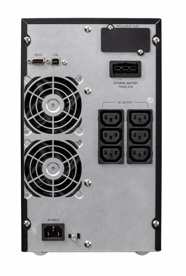 | Zvláštní charakteristiky | Topologie dvojité konverze Neustále monitoruje kvalitu vstupního napájení a reguluje napětí a frekvenci na výstupu Interní bypass zajišťuje kontinuitu provozu v případě poruchy UPS LCD displej ukazující stav a měřené hodnoty v reálném čase Kompatibilní s virtuálním prostředím (VMware, Hyper-V, Citrix Xen, Redhat) Dlouhá doba zálohy s až 4 volitelnými EBM |