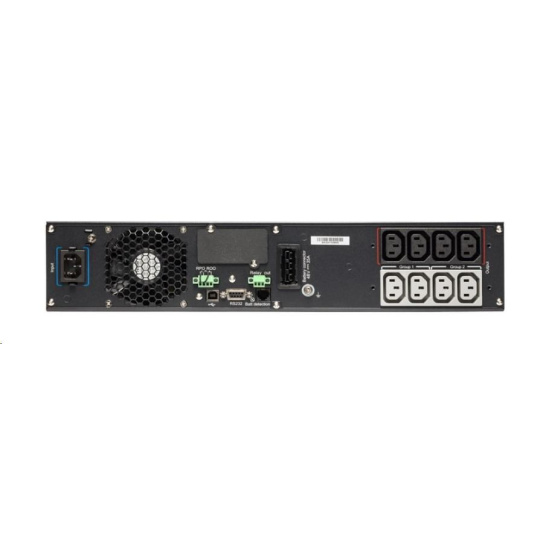 | Komunikace | USB port (kompatibilní s HID) Sériový port (RS232) Mini svorkovnice pro dálkové zapnutí / vypnutí (ROO) Mini svorkovnice pro vzdálené vypnutí napájení (RPO) Mini svorkovnice pro výstupní relé Bezpotenciálové kontakty (3 výstupy, 1 vstup, optočlen, DB9) |