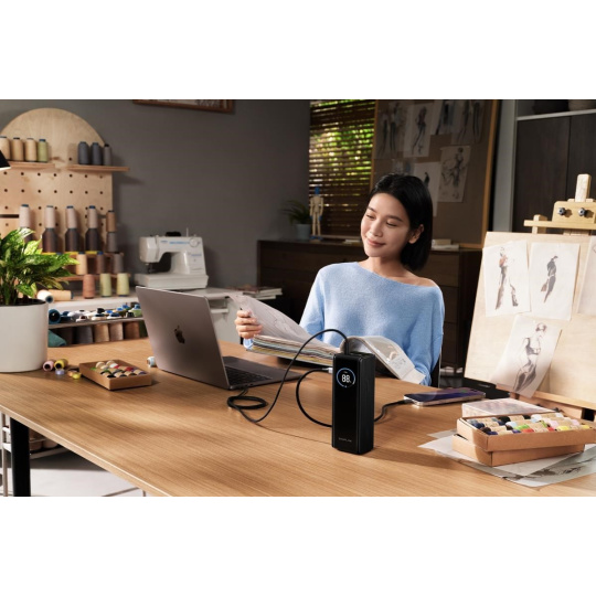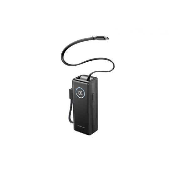 Už žádné ztracené kabely, dva integrované 100W USB-C kabely s navíjecím mechanismem a poutkem jsou vždy po ruce, úhledně uložené v elegantním designu powerbanky, s navíjecím mechanismem, který vám umožní přístup k napájení během několika sekund.