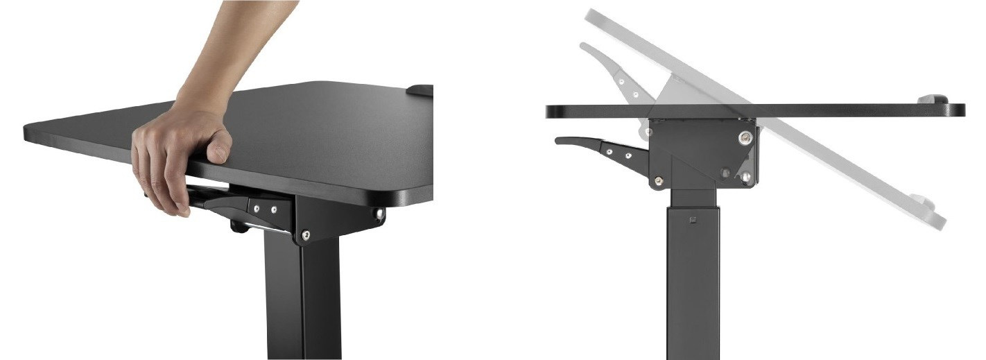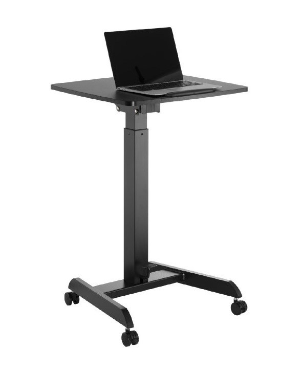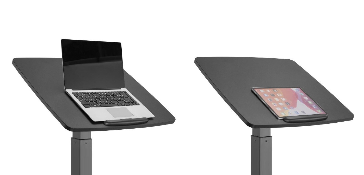 Stolek na notebook, laptop nebo projektor Fiber Mounts M8C92 výškově nastavitelný stolek na notebook, laptop nebo projektor, náklopná pracovní deska 60*56cm se zarážkou, nosnost 8kg, pojezdová kolečka s brzdou Velmi kvalitní a zároveň i pěkný pracovní stolek na notebooky nebo laptopy s možností elektrického výškového polohování pro práci v sedě nebo i vestoje. Výškové nastavení 758mm až 1128mm, tichý a rychlý chod, ovládání nožní pákou. Stolek je možné použít i na projektory a dataprojektory. Možnost snadného přemístění díky pojezdovým kolečkům s aretací. Pracovní desku je možné manuálně naklápět z vodorovné polohy až o 30°, rozměr pracovní desky je 600*560mm. Kvalitní povrchová úprava v decentní černé barvě. Ideální stolek do kanceláří i domácností. Pracovní stolek do kanceláře nebo domácnosti, elektrické výškové polohování pro práci v sedě nebo vestoje, na notebooky, laptopy nebo projektory Fiber Mounts M8C92Pracovní stolek do domácnosti nebo kanceláře Fiber Mounts M8C92 Technické údaje: nosnost pracovní desky 8kg rozměrná pracovní deska 600x560mm elektrické nastavení výšky stolku 758-1128mm nožním pedálem tichý a rychlý chod možnost manuálního naklopení pracovní desky 0° až -30° vynikající pevná konstrukce kvalitní povrchová úprava v černém provedení design vhodný jak do kanceláří tak i domácností možnost práce na notebooku vsedě nebo vestoje pojezdová kolečka s aretací záruka 2 roky.