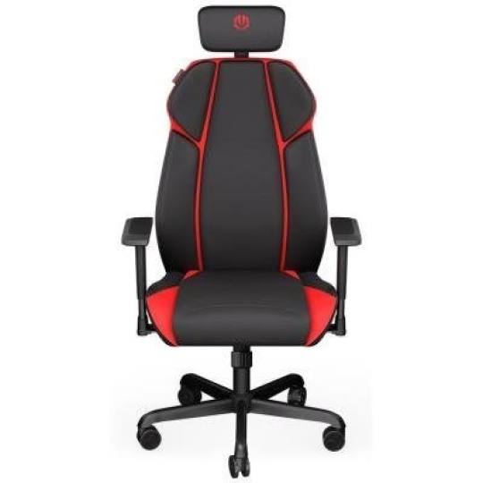 Robustní herní židle s atraktivním designem poskytuje dokonalou oporu a pohodlí i při dlouhém sezení u počítače. Je vyrobena z kvalitní prodyšné textilní látky a syntetické kůže. Nastavitelná výška židle, opěrky rukou nastavitelné ve všech směrech a úhel sklonu opěradla až 125° zajistí maximální komfort. Kolečka o průměru 60 mm jsou pokryta vrstvou odolného nylonu, který zároveň chrání podlahu před poškrábáním a snižuje hlučnost. Nosnost židle je až 120 kg.