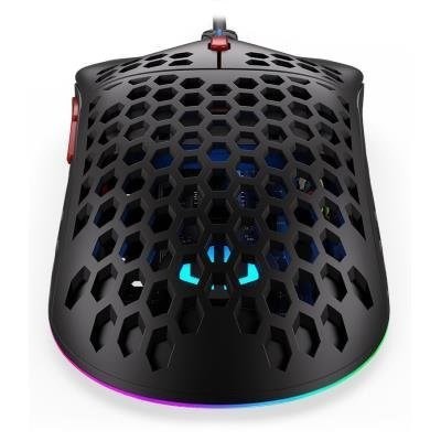 Ultralehká herní myš disponující 6 programovatelnými tlačítky a vysoce přesným optickým senzorem Pixart PMW3370 s rozlišením až 19000 dpi. Herní design doplňuje adresovatelné RGB podsvícení. Kvalitní spínače Khail GM 8.0 vydrží více než 80 milionů kliků. Připojení je realizováno skrze opletený USB kabel o délce 1,8 m.