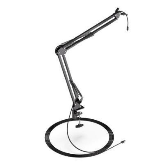 Nastavitelné rameno se 3 klouby pro ideální polohu mikrofonu při streamování nabízí jednoduchou a pevnou montáž pomocí šroubu ke stolní desce o tloušťce max 63 mm. Stojan je vhodný pro všechny běžně používané mikrofony do hmotnosti až 0,6 kg. Rameno umožňuje flexibilní nastavení v horizontálním i vertikálním směru a samotný připevněný mikrofon lze otáčet o 360 stupňů. Předností je také vestavěný USB typ C kabel či podpora 5/8" i 3/8" závitu.