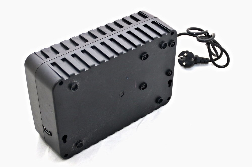 Záložní zdroj "Line interactive" EA200Pro+ kompaktní velikosti. Konstrukce umožňuje i zavěšení na zeď. Na čelním panelu vypínač ON/OFF a indikační LED.