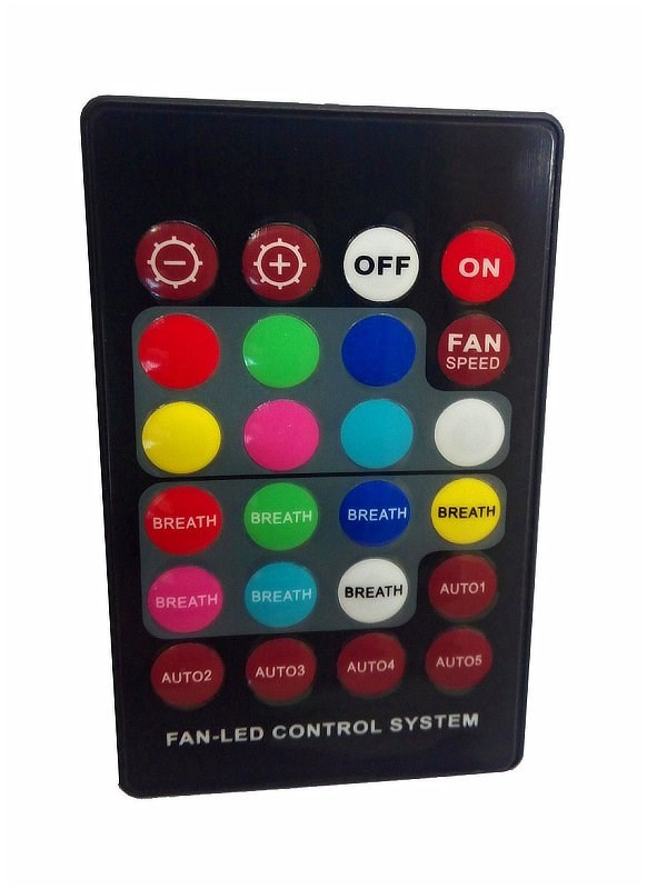 - dálkové ovládání (možnost volby barvy podsvětlení s možností vypnutí, řízení otáček ventilátorů s možností vypnutí)