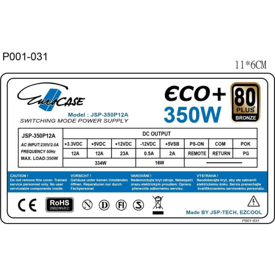 EUROCASE zdroj 350W Eco+, 120mm, 80+ Bronze, ATX