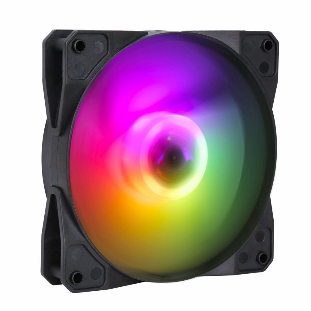 ARGB LED ventilátor typu rainbow s LED diodami. Ventilátor umožňuje najednou zobrazit všech sedm barev duhového spektra. Jedná se o kontrolní ventilátor, který je určen pro použití s ventilátorem EVOLVEO 12FS. LED osvětlení je ovládáno pomocí tlačítka reset nebo LED tlačítka na ovládacím panelu skříně nebo připojením přiloženého ARGB kabelu k základní desce.