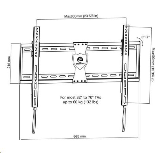 Extra pevný sklopitelný držák na televize ErgoSolid PERTO-4T Náklopný držák na Tv 32-70" prémiové kvality, náklon max. -7°, nosnost 60kg Náklopný držák kvalitní konstrukce s vysokou nosností 60kg pro zavěšení televizorů s úhlopříčkou 32-70". Snadné zavěšení televizoru, automatické zaaretování Tv na držáku, uvolnění pomocí táhel. Držák podporuje VESA standardy 200x200 až 600x400. Barevné provedení černé. Držák je dodáván včetně instalačního materiálu - šrouby pro uchycení Tv, distanční podložky, hmoždinky a vruty pro ukotvení držáku na stěnu. Ergosolid PERTO-4T držák na Tv 32-70 Technické údaje: nosnost 60kg podporuje VESA standardy 200x200 až 600x400 na televize a monitory s úhlopříčkou 32" až 70" (80cm až 180cm) možnost náklonu obrazovky 0° až -7° automatické zajištění obrazovky proti vysazení na držáku, uvolnění pomocí táhel odsazení obrazovky od zdi 30mm konstrukce držáku vysové pevnosti prémiová kvalita materiál ocel barevné provedení černé záruka 5 let Extra pevný sklopitelný držák pro zavěšení Tv 32-70 palců, nosnost 60kg. Prémiová kvalita značky ErgoSolid - PERTO-4T Držák PERTO-4T podporuje VESA standardy: VESA 200x200 VESA 300x100 a 100x300 VESA 300x200 a 200x300 VESA 300x300 VESA 400x200 a 200x400 VESA 400x300 a 300x400 VESA 400x400 VESA 500x300 VESA 600x400 Na držáky ErgoSolid PERTO-4T můžete zavěsit všechny značky, typy a velikosti televizorů, které mají hmotnost do 60kg a které podporují kterýkoliv z výše uvedených VESA standardů. Na velikosti úhlopříčky nezáleží - není podstatná. Automatické zajištění televizoru na držáku ihned po jeho usazení zajišťuje vyšší míru bezpečnosti. Uvolnění televizoru z držáku je možné po zatažení za obě táhla, která zůstanou skryta za televizorem. Držáky prémiové značky ErgoSolid dodáváme včetně univerzální sady instalačního materiálu pro ukotvení držáku na zeď a uchycení Tv na držák: šrouby M4x12mm - 4ks šrouby M4x30mm - 4ks šrouby M5x12mm - 4ks šrouby M5x30mm - 4ks šrouby M6x15mm - 4ks šrouby M6x30mm - 4ks šrouby M8x15mm - 4ks šrouby M8x30mm - 4ks distanční podložky 5mm - 8ks distanční podložky 10mm - 4ks podložky na šrouby M4/5/6 - 4ks podložky na šrouby M8 - 4ks vruty do hmoždinek 8x63mm - 4ks hmoždinky do zdi z cihel, betonu nebo dřeva o průměru 10mm - 4ks.