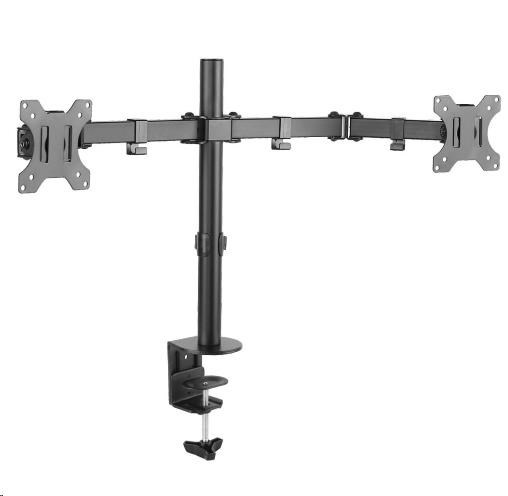 Fiber Mounts M7C54 - kancelářský držák na 2 LCD monitory Kvalitní deskový držák na 2 monitory 13-32", otáčení do stran, náklon, nastavení výšky a vzdálenosti Univerzální držák pro zavěšení 2 obrazovek vedle sebe, nezávislé nastavení polohy jednotlivých monitorů, VESA standard, nosnost 16kg. Úchytky na zafixování kabeláže. Součástí balení jsou 2 typy ukotvení na stolovou desku. Držák je díky své výborné kvalitě a velmi příznivé ceně často vyhledávaným. Technické údaje: celková nosnost 16kg maximální hmotnost 1 monitoru 8kg podpora VESA standardu 75x75 a 100x100 za příplatek možnost rozšíření na 200x100 nebo 200x200 doporučená úhlopříčka monitoru nebo televizoru 13-32" otáčení do stran +/- 180° náklon +/- 45° celková výška 443mm nastavení výšky monitoru dle potřeby úchytky pro zafixování kabeláže kvalitní bezpečná konstrukce materiál ocel barva černá záruka 3 roky Kancelářský držák na 2 monitory M7C54 podporuje VESA standardy: VESA 75x75 VESA 100x100.