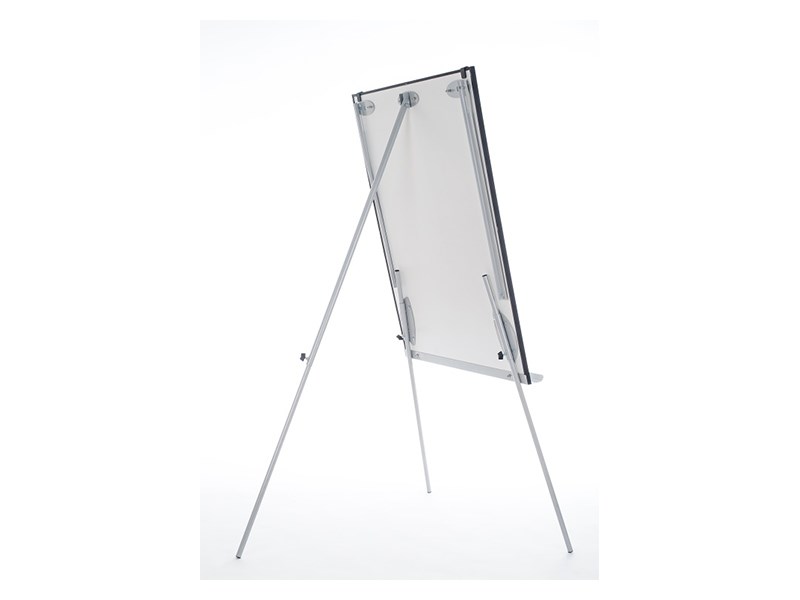 Flipchart s magnetickým povrchem. Flipchart disponuje bočními vyklápěcími lištami pro zavěšení potřebných materiálů.