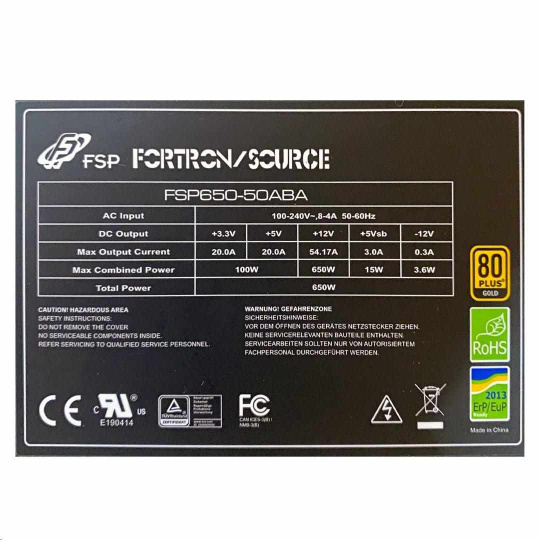 Fortron zdroj 650W FSP650-50ABA 80PLUS GOLD, bulk, černá