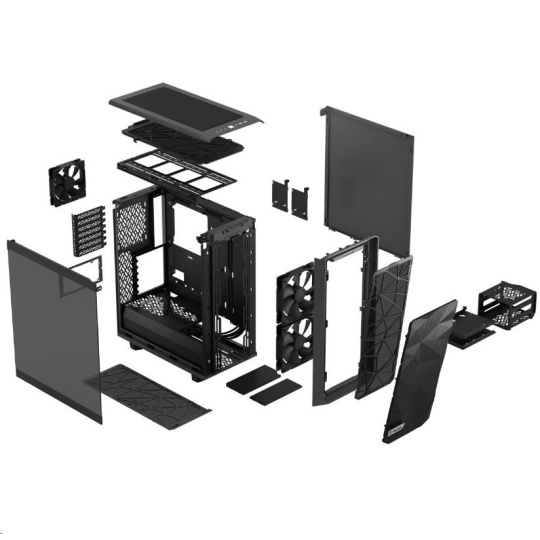 Meshify 2 Compact is a high-performing case with a bold, stealth-inspired aesthetic. Its striking exterior features bolt-free, flush tempered glass, a fully removable top panel granting excellent interior access, and a front USB 3.1 Type-C port.