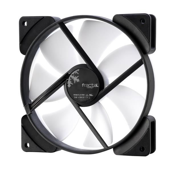 Tichý ventilátor Fractal Design Prisma AL-14 ARGB PWM do PC sestav se 6 RGB LED diodami, poloprůhlednými bílými lopatkami ventilátoru a bílým prstencem vytvoří jednotnou záři po celém povrchu ventilátoru.