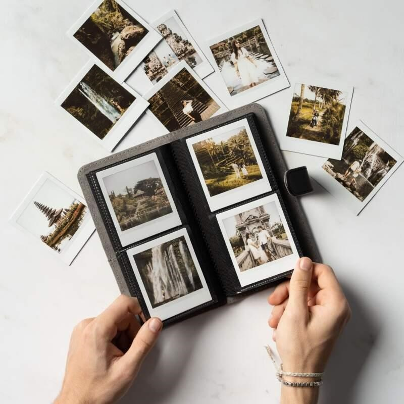 Foto album je určeno pro fotografie Instax Mini a dokáže pojmout celkem 108 snímků na 18 stranách. Materiál: polyuretanová kůže v pěti různých barvách..