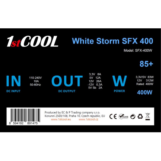 1stCOOL Zdroj White Storm SFX 400 85+, 400W, SFX, černá