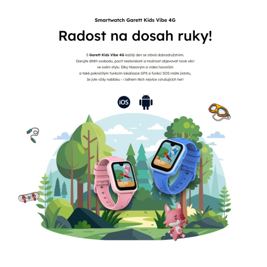 S Garett Kids Vibe 4G se každý den stává dobrodružstvím. Darujte dítěti svobodu, pocit nezávislosti a možnost objevovat nové věci po svém. Díky hlasovým a video hovorům a také pokročilým funkcím lokalizace GPS a SOS máte jistotu, že jste vždy nablízku - i během těch nejnapínavějších her!