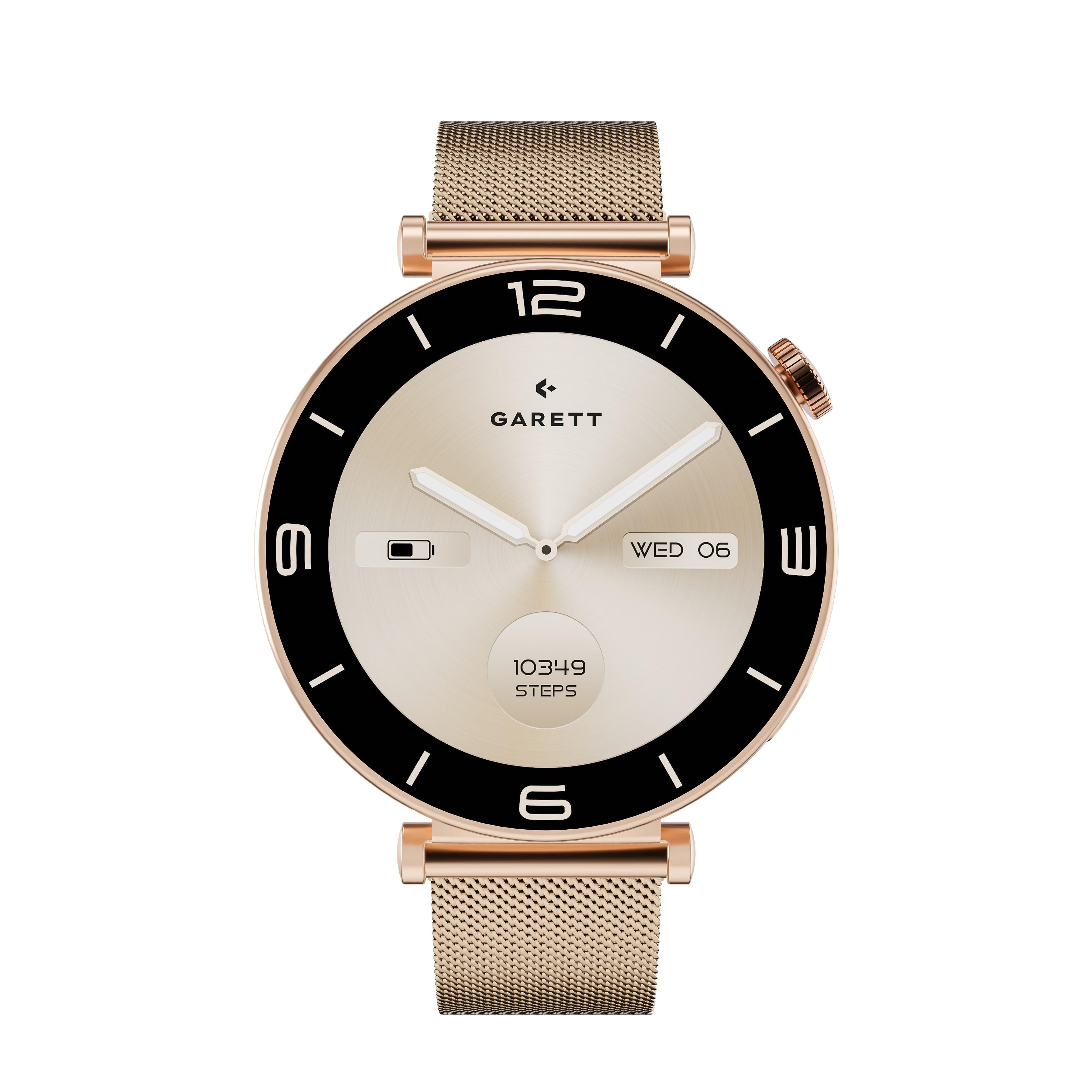 Elegantní chytré hodinky Garett Rose v barvě růžového zlata jsou mnohem více než jen krásný doplněk. Je to váš osobní asistent, který vás doprovází každý den. Postarejte se o své zdraví, sledujte své každodenní aktivity a vypadejte přitom úžasně. S těmito hodinkami se budete cítit výjimečně v každé situaci. Plňte své cíle s elegancí!