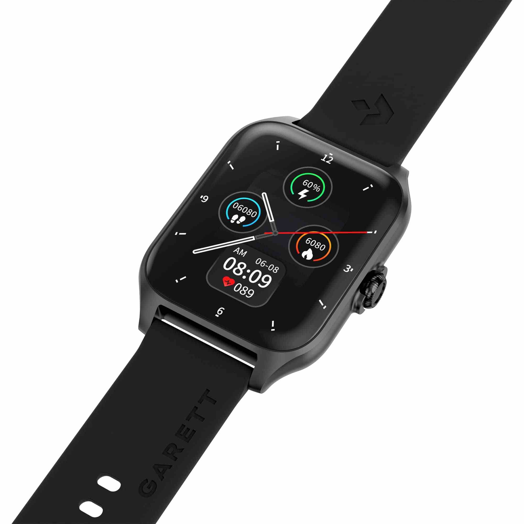 - Sada obsahuje: chytré hodinky Garett, černý silikonový řemínek, černý kovový řemínek, nabíjecí kabel USB (bez zástrčky), příručku QSG