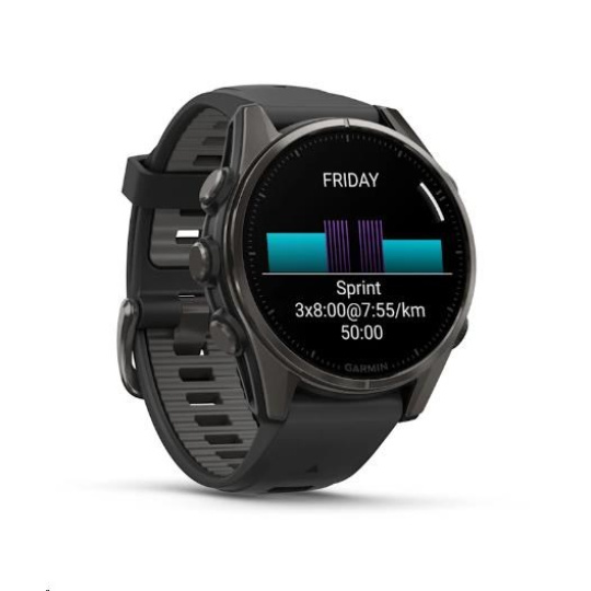 Garmin fenix® 8 – 43 mm, AMOLED, Sapphire, Carbon grey DLC titanium, Black / Pebble grey se silikonovým řemínkem, EU