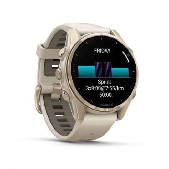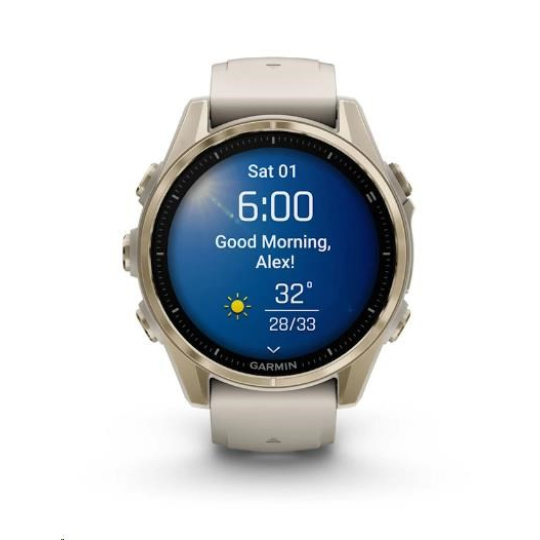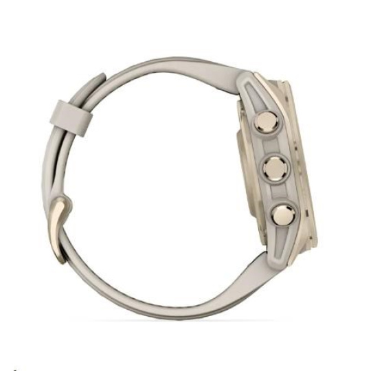 Garmin fenix® 8 – 43 mm, AMOLED, Sapphire, Soft Gold / Fog grey se silikonovým řemínkem, EU