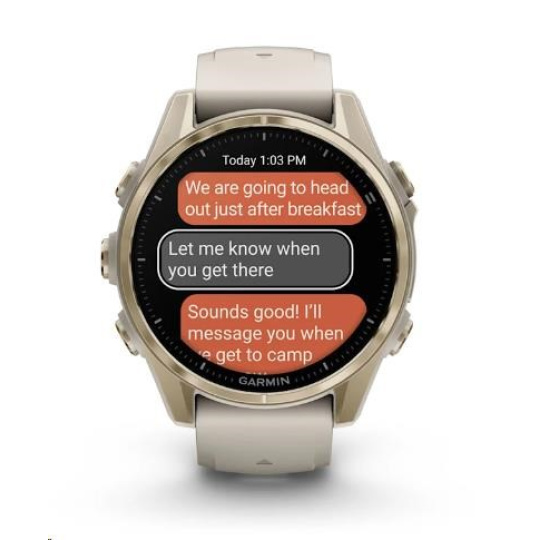 Na hodinkách můžete přijímat e-maily, textové zprávy a upozornění na spárovaném telefonu Android nebo Apple. Hodinky rovněž podporují platby Garmin Pay, abyste se při svých dobrodružstvích mohli vydat kamkoliv a nestarat se o to, že jste něco zapomněli doma. S hodinkami Garmin fénix 8 máte totiž vždy všechno důležité po ruce - na svém zápěstí.