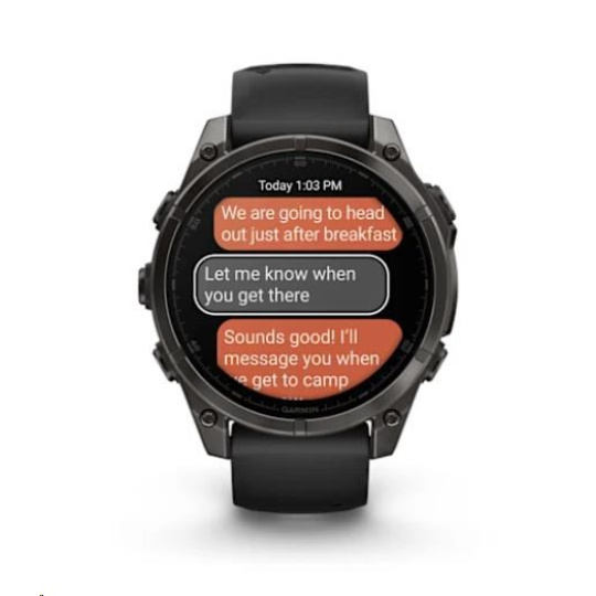 Na hodinkách můžete přijímat e-maily, textové zprávy a upozornění na spárovaném telefonu Android nebo Apple. Hodinky rovněž podporují platby Garmin Pay, abyste se při svých dobrodružstvích mohli vydat kamkoliv a nestarat se o to, že jste něco zapomněli doma. S hodinkami Garmin fénix 8 máte totiž vždy všechno důležité po ruce - na svém zápěstí.