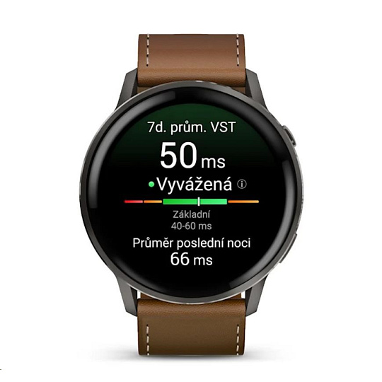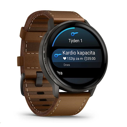 Garmin Venu 4 (45 mm) Slate / Černý silikonový řemínek a Hnědý kožený řemínek, EU (upravit kartu)