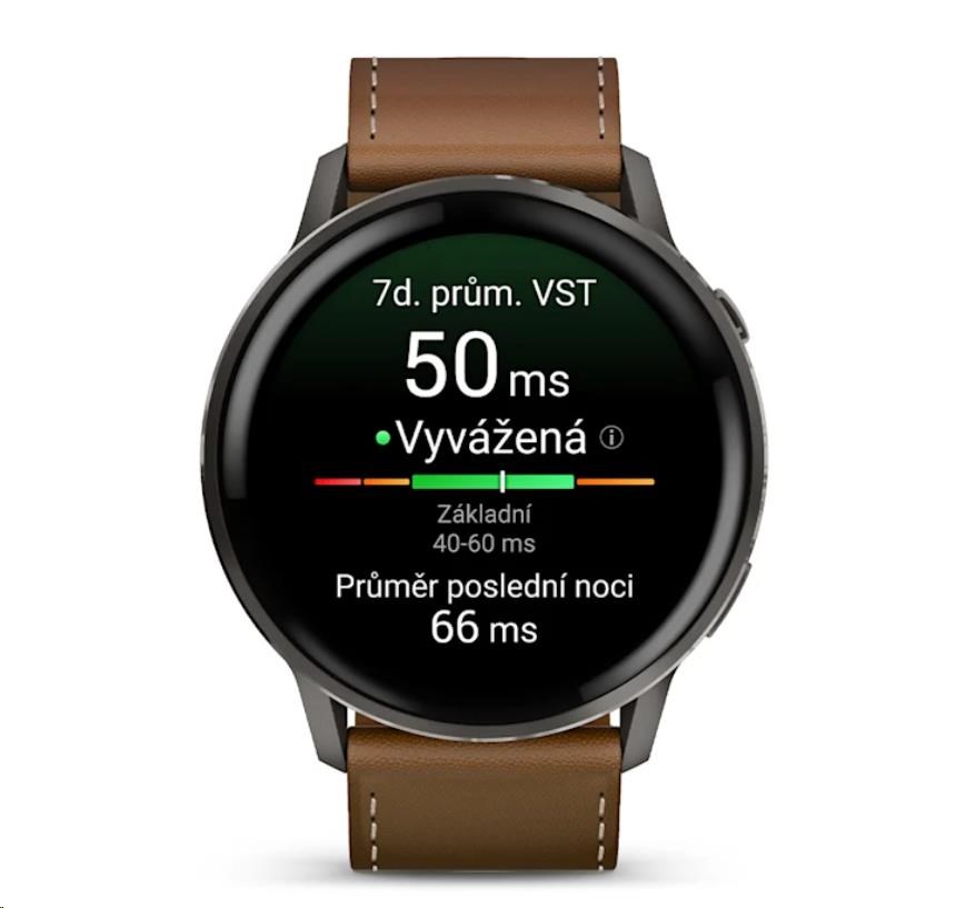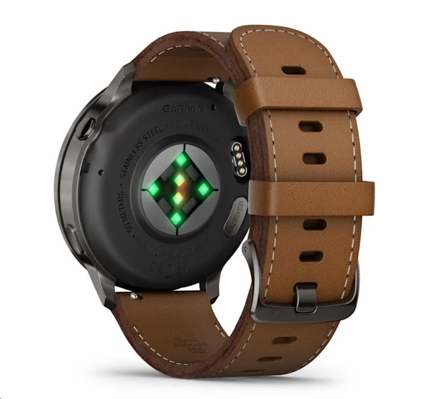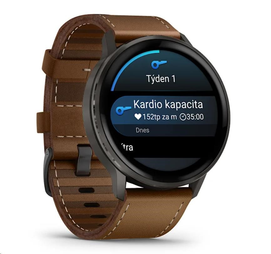 Garmin Venu 4 (45 mm) Slate / Černý silikonový řemínek a Hnědý kožený řemínek, EU (upravit kartu)
