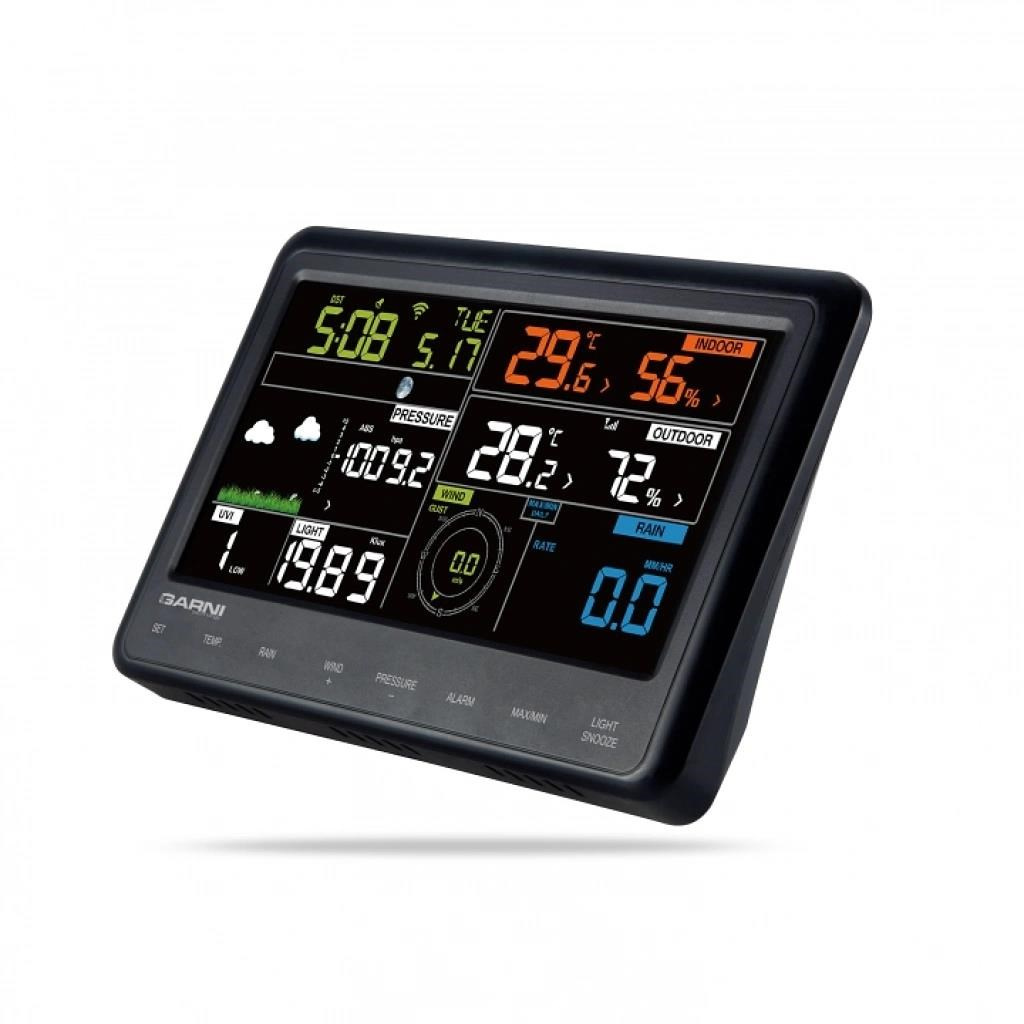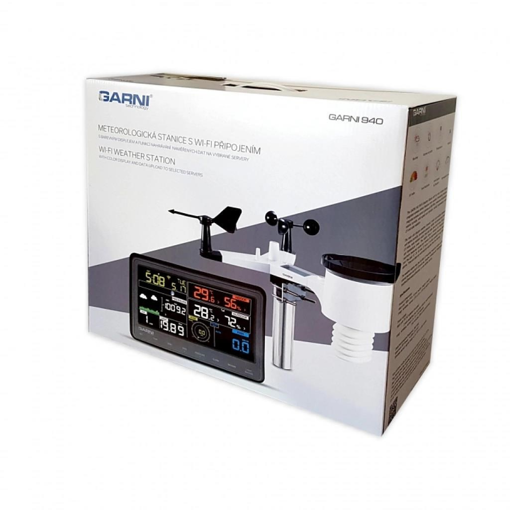 Wi-Fi meteorologická stanice s integrovaným bezdrátovým čidlem model GARNI 940 je vybavena mnoha funkcemi, zajišťujícími informace o předpovědi počasí. Integrované bezdrátové čidlo pracuje na frekvenci 868 MHz a měří teplotu a relativní vlhkost, rychlost a směr větru, úhrn srážek, teplotu, vlhkost, UV záření a intenzitu osvětlení.