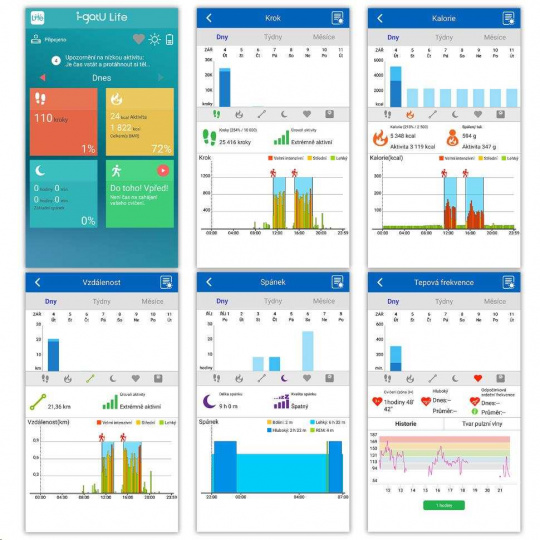 - volba 4 režimů na náramku - denní, spánek, sport a upomínky/zdřímnutí