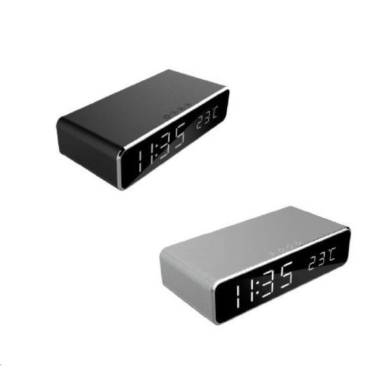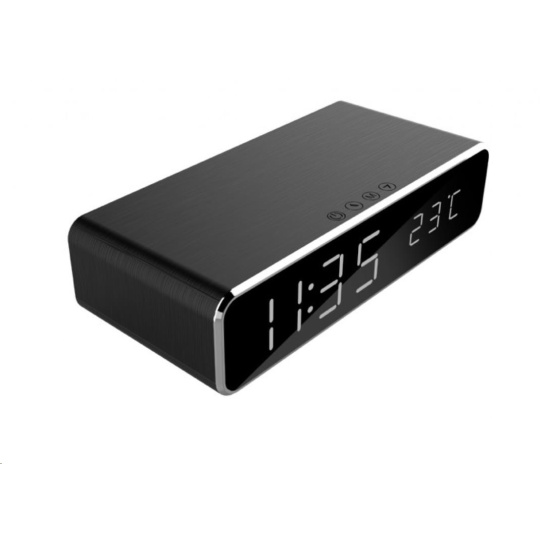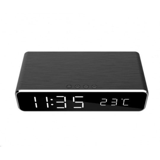 GEMBIRD digitální budík s funkcí bezdrátového nabíjení, black/černá