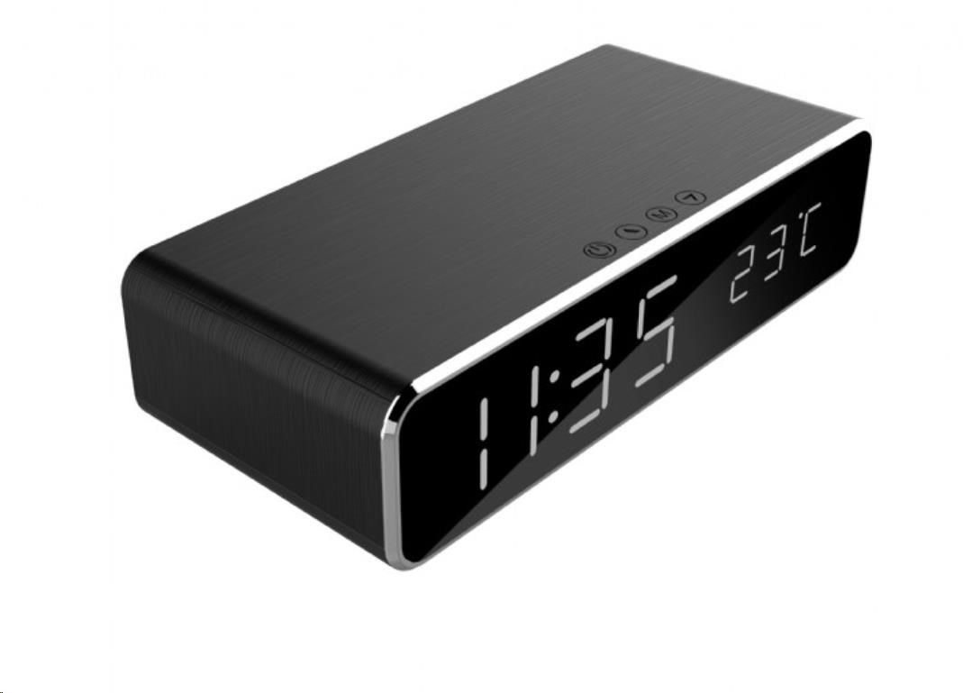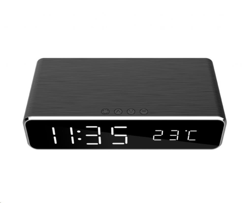 GEMBIRD digitální budík s funkcí bezdrátového nabíjení, black/černá