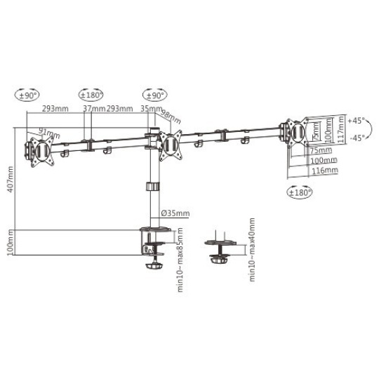 - Rameno umožňuje otáčet, vysouvat, zatahovat nebo naklánět váš displej a umožňuje otočení displeje z režimu na šířku do režimu na výšku atd.