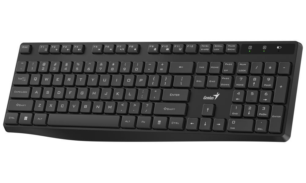 Bezdrátová klávesnice je navržena tak, aby uživateli poskytla maximální komfort při každodenní práci. Ergonomický sklon společně s klávesami typu chiclet umožňuje efektivní a pohodlné psaní. Připojení je realizováno skrze technologii 2,4 GHz a miniaturní USB přijímač. Napájení mají na starost dvě AAA baterie, které jsou součástí balení.