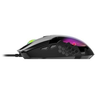 Herní myš disponující 6 tlačítky a vysoce přesným optickým senzorem s nastavitelným rozlišením v rozmezí 800 až 7200 DPI. Ergonomický herní design myši doplňuje RGB podsvícení s 3D efektem. Pro připojení k počítači slouží 1,8 m dlouhý opletený kabel zakončený USB konektorem.