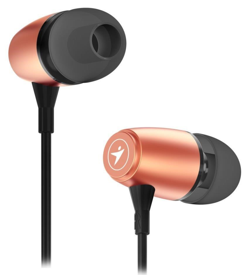 Kvalitní špuntová sluchátka se zabudovaným mikrofonem poskytují díky 10 mm velkým měničům skvělý zvukový přednes. Integrované tlačítko na kabelu umožňuje přijmout/odmítnout hovor. Kvalitní 1,2 m dlouhý kabel je zakončený konektorem 3,5 mm jack. Součástí balení jsou 2 páry náhradních špuntů ve dvou velikostech.