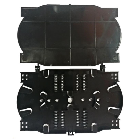 Optická kazeta s víčkem a hřebínky pro 24 svarů ve 2 úrovních. Rozměry: 155x105x12mm Lze dokoupit zatavovací ochrany svaru s ocelovým výztužným drátem: