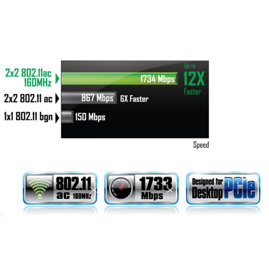 2x2 802.11ac Dual Band WIFI + BLUETOOTH 5 card GC-WB1733D-I is an exclusive PCIe expansion card that offers support for the latest 2x2 802.11ac 160MHz Dual Band WIFI and BLUETOOTH 5 connectivity.