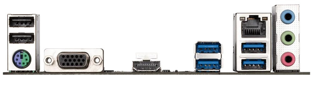 1 x PS/2 keyboard/mouse port 1 x D-Sub port 1 x HDMI port 4 x USB 3.2 Gen 1 ports 2 x USB 2.0/1.1 ports 1 x RJ-45 port 3 x audio jacks