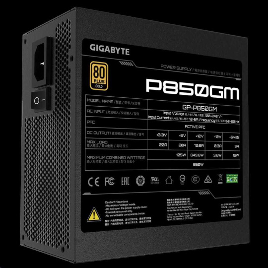 GIGABYTE zdroj P850GM, 850W, 80plus gold, modular, 120 mm fan